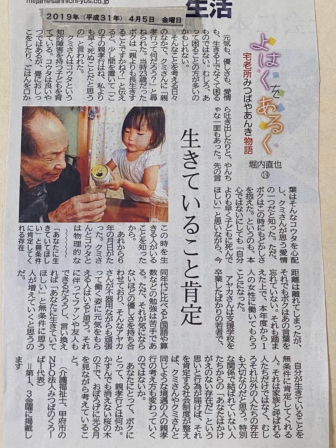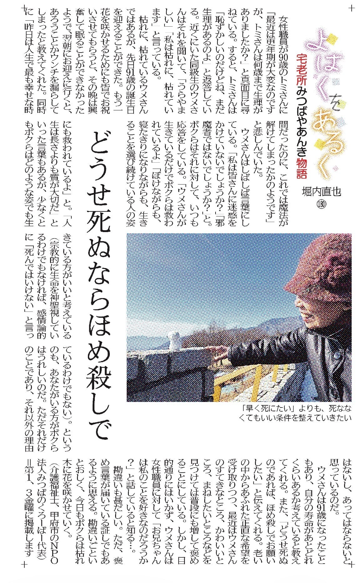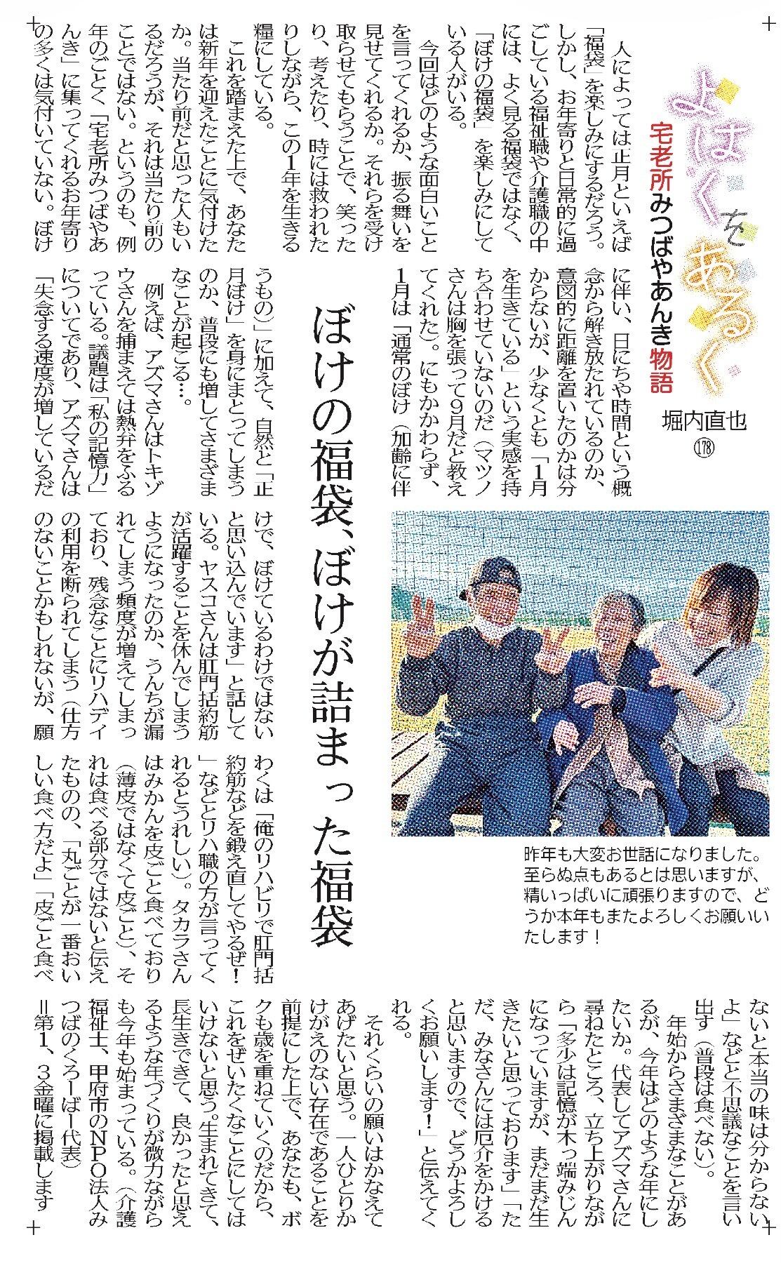 宅老所みつばやあんきの新聞コラムになります。